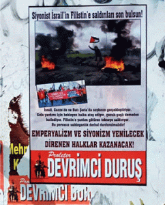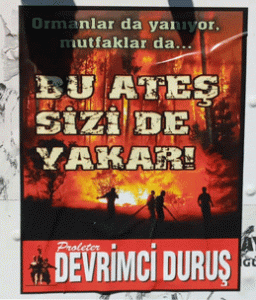 “Siyonist İsrail’in Filistin’e saldırıları son bulsun” yazılı ve “Ormanlar da yanıyor mutfaklar da; BU ATEŞ SİZİ DE YAKAR!” yazılı, PDD imzalı afişler merkezi yerlere ve emekçi semtlere yapıldı.